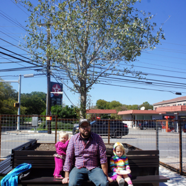 Other companies finished out the stucco of the building and its paint, remodeled the inside, installed the vegetation, poured concrete, installed the astroturf, and updated the lighting during our tenure at APA!. The grand opening was yesterday, October 20th, and Matt and I brought the kids to see the general public interacting with our labor of love while picking out big-bellied puppies. I can’t wait to see how the space changes as the trees and vines fill out more and the Texas Mountain Laurel blooms next spring.